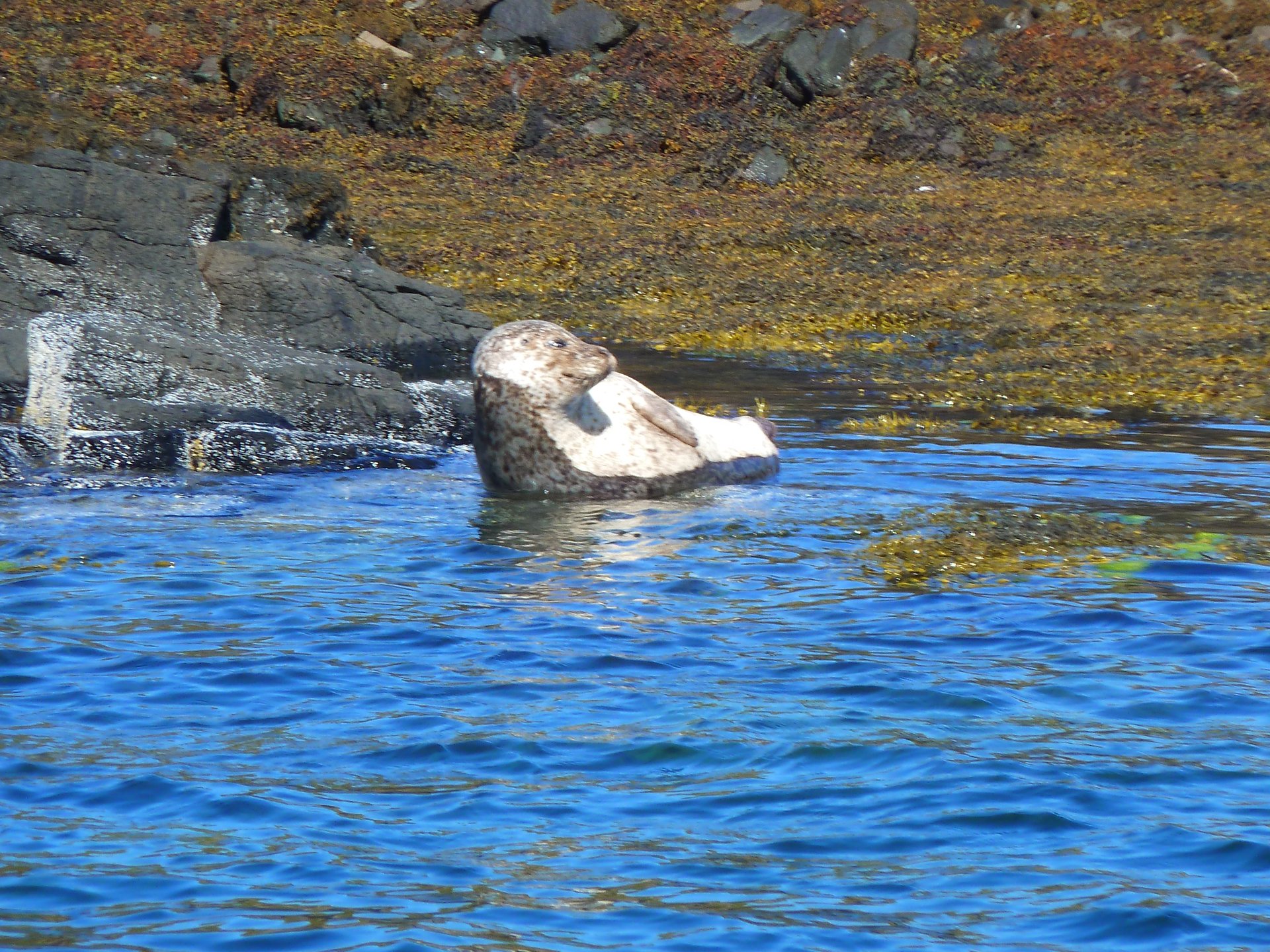 Tänase päeva ilma kohta võib öelda, et enam paremaks minna ei saa!!! Täiesti selge sinine taevas, päike säras ning meri oli praktiliselt tuulevaikne. Merereisiks täiesti ideaalne ilm! Minu ootused vaatlustuuri suhtes olid pisut suuremad, mõtlesin, et näemegi delfiine laeva kõrval veest välja hüppamas, aga suures osas kujunes meie reis rohkem linnuvaatlustuuriks-neid seal ikka nägi ja tudengid osaksid kõigi kohta ka juttu juurde rääkida, nii et iseenesest oli ka see huvitav. Paar korda küll õnnestus näha väikeste delfinide selga ja uimeid, aga seda kahjuks nii korraks. Nad käivad ainult hetkeks veepinnal hingamas ja siis kaovad jälle tükiks ajaks. Laeva kapten nägi ka kääbusvaala seljauime, selleks ajaks, kui teised jõudsid reageerida, oli vaal juba kadunud. Ka paari hüljest nägime, nii et päris tühja meie merereis siiski ei läinud. Nautisime lihtsalt ilusat päeva, vaated meid ümbritsevatele saartele olid taaskord muinasjutuliselt ilusad.