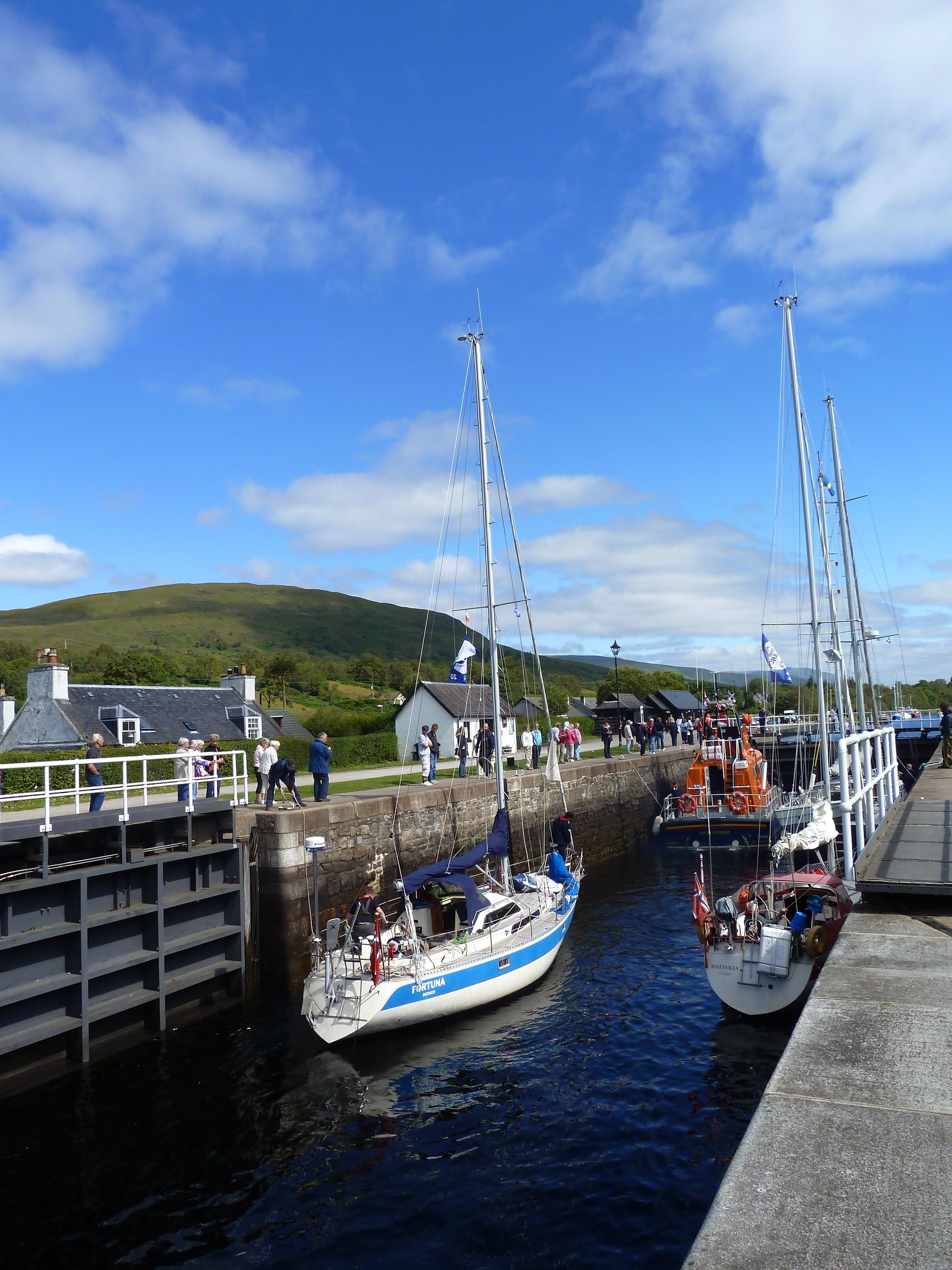 Enne praamile minekut jõudsime vaatamas käia Devil Stairs’i, nii nimetati lüüse, mille kaudu laevad tõstetakse merepinnalt järvepinnale ja vastupidi. Jõudisme kohale just ajal, mil kolm purjejahti (kaks Rootsist ja üks Norrast) eskorditi kohaliku vetelpääste kaatri poolt turvaliselt läbi lüüside järvevetele. Kokku oli lüüse kaheksa, nii et kokku võtab päris palju aega kogu see toiming.
