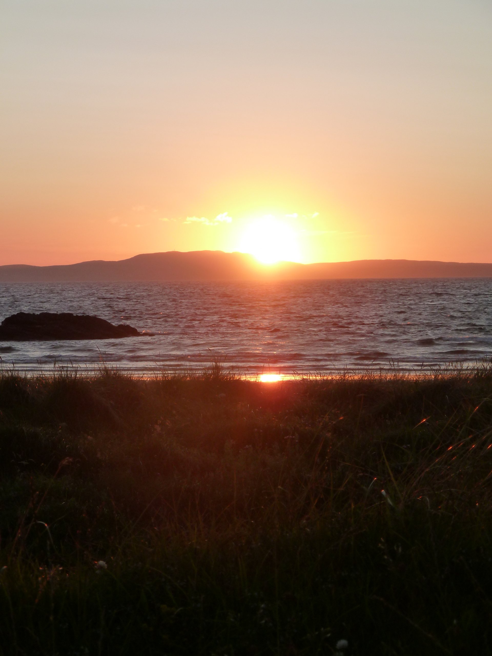 Olime endale kaheks ööks välja valinud Kintra Farm’i kämpingu, mis asus maaliliselt kaunis lahesopikeses. Rahvast ei olnud palju, ainult mõned telgid veel peale meie. See koht asub tõesti nö pärapõrgus, et inimesed võib-olla ei teagi, et seal nii fantastiliselt ilus puutumatu loodus on. Mõned tuulenautlejad olid oma telgi tuulisele kaldakõrgendikule püsti pannud, meie jällegi oleme oma reisipäevadel nii palju tuult saanud, et otsisime pisut varjulisema nõlva, aga samas sellise koha, et päikeseloojang oleks ikka telgiaknast näha 🙂 Tõeline miljonivaade!