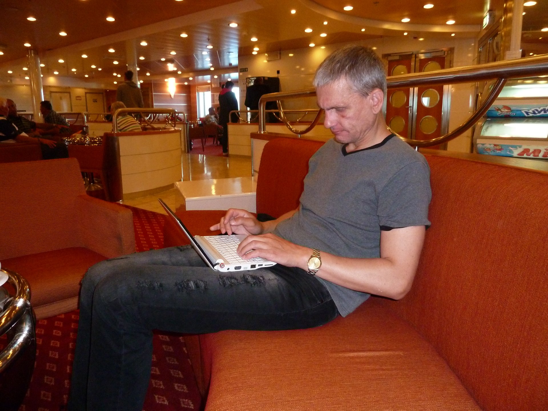 The day passed pleasantly on the ship. There were two very important things to do – eat and sleep. The sun was shining at sea and there was also a sheltered spot where you could relax in the sun.