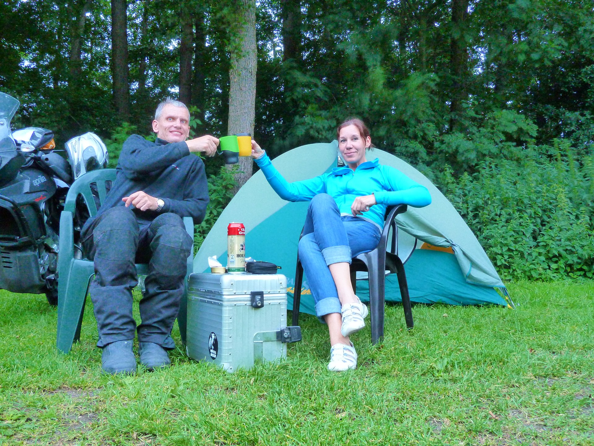 Kämping ei olnud enam kaugel. Bensiinijaamast ostsime veidi süüa-juua kaasa ning varsti olimegi kohal. Õhtu oli mõnusalt sume, istusime telgi ees ja nautisime saksa õlut. Seejärel pugesime oma uutesse magamiskottidesse ja tuli mõnus uni.